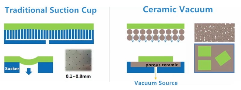 လေဟာနယ်စုတ်ယူခြင်းဖလားသည်ယေဘုယျအားဖြင့်အဓိကခန္ဓာကိုယ်နှင့်အခြေစိုက်စခန်းနှစ်ခုဖြစ်သောအပိုင်းနှစ်ပိုင်းဖြင့်ဖွဲ့စည်းထားသည်။ အဓိကကိုယ်ထည်သည်အဓိကလုပ်ဆောင်ချက် area ရိယာဖြစ်သော porous ကြွေထည် disc ကိုဖြစ်သည်။ ၎င်းကိုယေဘုယျအားဖြင့် poroous silicon carbide, alumina နှင့်အခြားပစ္စည်းများကဲ့သို့သော porous ကြွေထည်များဖြင့်ပြုလုပ်ထားသည်။ ကွဲပြားခြားနားသောပစ္စည်းများနှင့်သန့်ရှင်းရေးကွဲပြားခြားနားသောအရောင်များနှင့်ကိုက်ညီ။ လေဖိအားကိုထည့်သွင်းရန်အတွင်းပိုင်းကျမ်းပိုဒ်ဒီဇိုင်းတစ်ခုရှိပါသည်, ဒါကြောင့်အရာဝတ်ထုကို chuck chuck ရဲ့မျက်နှာပြင်ပေါ်မှာပေါ်လာတယ်။ အဓိကအားဖြင့်အဓိကခန္ဓာကိုယ်ကိုထောက်ပံ့ရန်အဓိကအားဖြင့်အသုံးပြုသည်။ ပစ္စည်း၏ဝိသေသလက္ခဏာများကြောင့် porous ကြွေထည်များသည်အတော်အတန်ပျက်စီးလွယ်ပြီးချိုးဖျက်ရန်လွယ်ကူသည်။ အခြေစိုက်စခန်းထည့်ခြင်း Chuck အသုံးပြုခြင်းသည်အကျိုးရှိသည်။ အခြေခံကိုသံမဏိ, အလူမီနီယမ်အလွိုင်း, Alumina, Silicon Carbide Ceramsics စသည်တို့ကိုအခြေခံသည်။