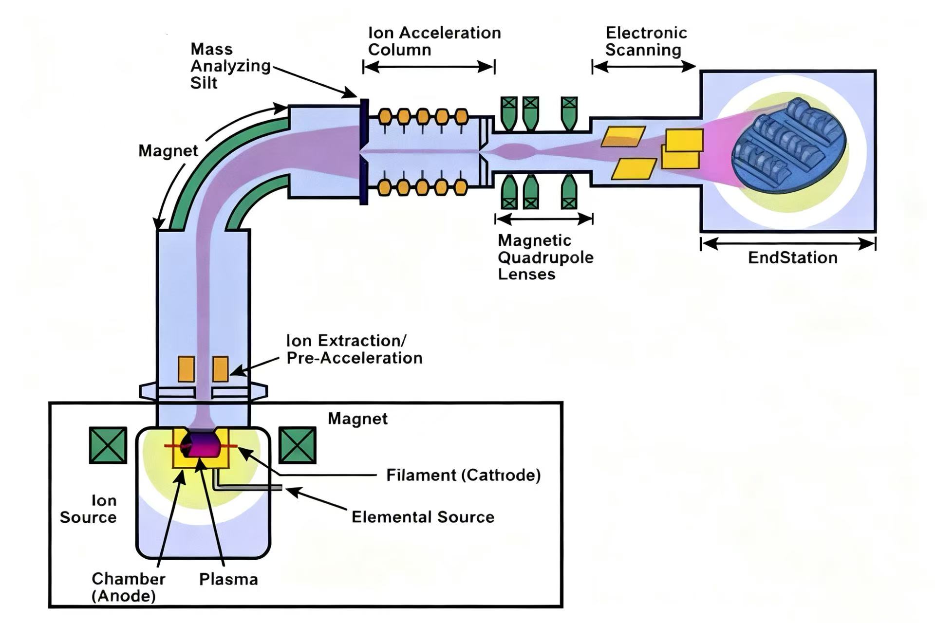 2.ion implants သည် semiconduction, Process Process Promptature များနှင့်အလွှာအနိမ့်သောအပူချိန်အပူချိန်နှင့်အနည်းငယ်သာပျက်စီးမှုအနည်းငယ်သာရှိသော Semiconductor ကုန်ထုတ်လုပ်မှုတွင်အဓိက doping techniquege ဖြစ်သည်။ အထူးသဖြင့်အိုင်းယွန်း implantation လုပ်ငန်းစဉ်သည်အိုင်းရစ်အိုင်းယွန်းများကိုဖန်တီးရန်အညစ်အကြေးအရောအနှောများပါ 0 င်သည်။ ထို့နောက် Semiconductor မျက်နှာပြင်သည်ဤအမြန်ရွေ့လျားနေသောအိုင်းယွန်းများကြုံတွေ့နေရပြီးချိန်ညှိထားသော doping အတိမ်အနက်နှင့်တိကျသောထည့်သွင်းရန်ခွင့်ပြုသည်။ ဤနည်းသည်မော်ဖွန်းများ၏အရင်းအမြစ်နှင့်ယိုစီးမှုဒေသများကဲ့သို့သောရေတိမ်ပိုင်းဆိုင်ရာအဆောက်အအုံများကိုဖန်တီးရန်အထူးအသုံးဝင်သည်။