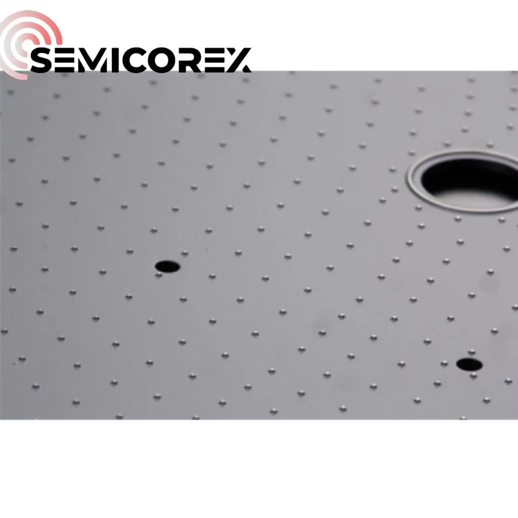Semicorex ၏မျက်နှာပြင်ဆီလီကွန်ကာဗိုက်pin chuck များကို micron အရွယ် အဖုအထစ်များစွာဖြင့် ခင်းကျင်းထားသည်။ မလိုအပ်သော wafer ခြစ်ရာများ၊ အမှုန်အမွှားများ ညစ်ညမ်းခြင်းနှင့် အမှတ်အသားများကို ထိရောက်စွာ ရှောင်ရှားနိုင်သောကြောင့် အဆက်အသွယ်ဧရိယာကို လျှော့ချထားသည်။